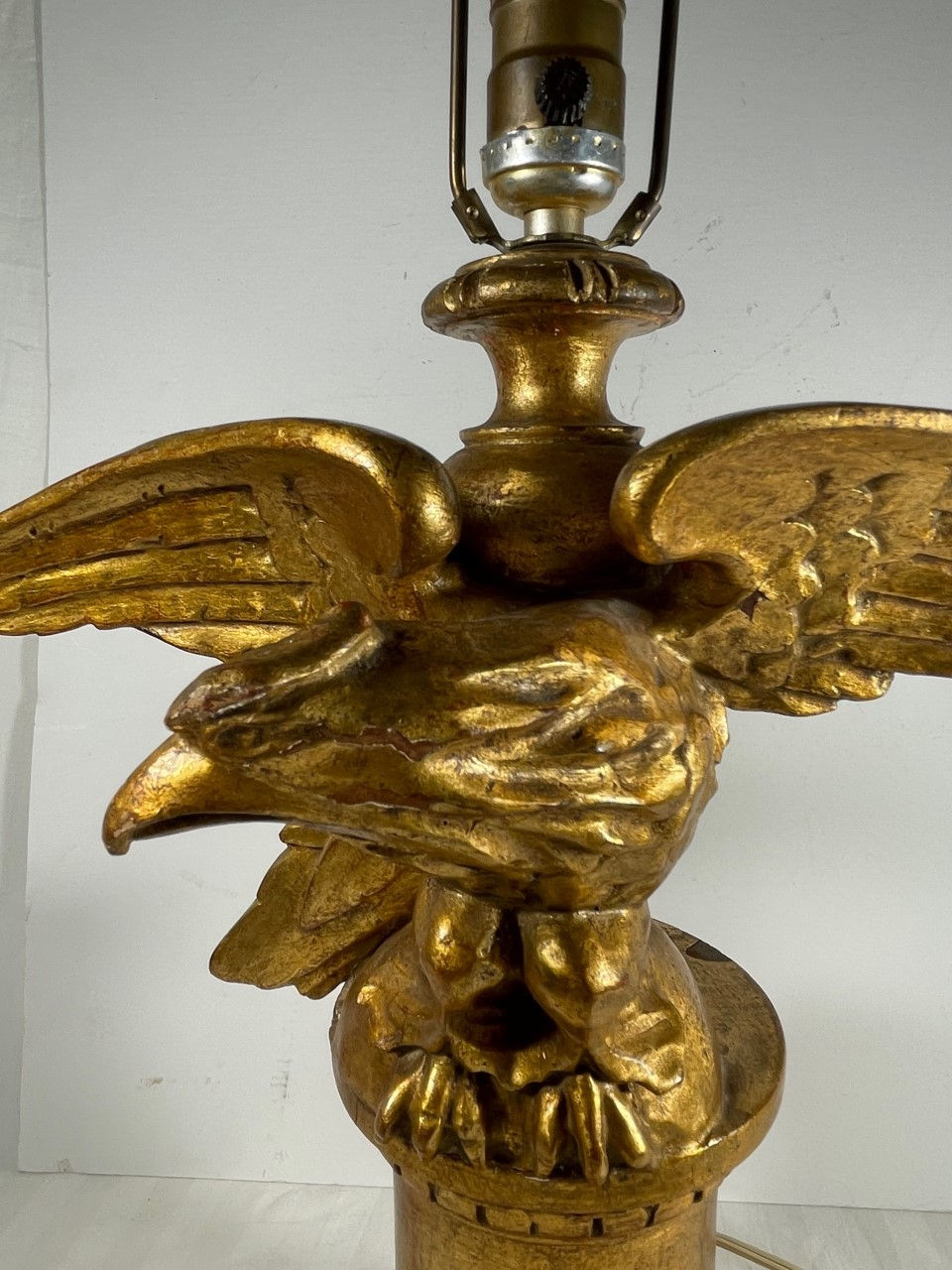 Vintage Hand Carved Eagle Neoclassical Giltwood Table Lamp.