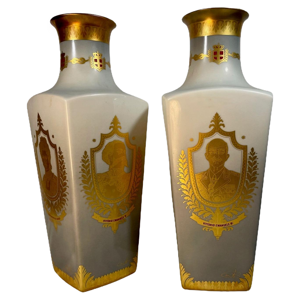 Pair of Historical Porcelain Vases, Italian Nicasio Collection. H 15.5"