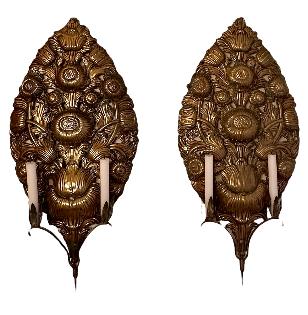 19th Century Italian Pair of Antique Brass Altar Palmettes
